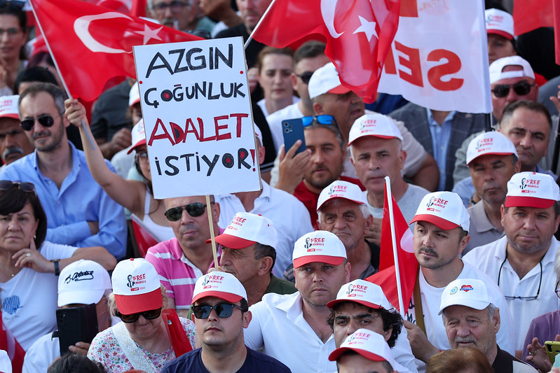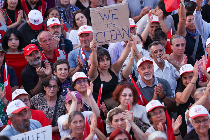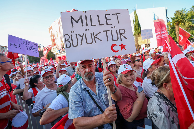 “Biliyorsunuz 19 Mart’ta bir darbe girişimine muhatap olduk. Öncesinde söylemiştim; ‘Bu ülkenin gelecek iktidarına, gelecek hükümetine, gelecekteki Cumhurbaşkanı’na darbe girişimi var’ diye. Bizim buna karşı Cumhurbaşkanı adayımızı belirleyeceğimiz gün onlar da Cumhurbaşkanı adayımıza darbeye kalkıştılar. Cumhurbaşkanı adayımızı alıp, dört gün nezarethanelerde tutup, ardından Silivri zindanına koydular. Bugünkü Cumhurbaşkanı Erdoğan geçmişte, bugün Ekrem Başkan’a yöneltilen bütün suçlamalardan yargılandı. Ama bir sabah kapısına polis arabaları gelmedi. Sabah 06.00’da alınıp da nezarethaneye götürülmedi. Bir gün gözaltında tutulmadı. Yargılandı ama bir gün tutuklanmadı. Ceza aldı, görevine devam etti. Ne zaman Yargıtay onun cezasını onayladı, telefonla çağrıldı. Saraçhane’de mitingle uğurlandı. Davul, zurna ile teslim oldu. Hapsi o şekilde yattı. Buradan bütün AK Partililere sesleniyorum: Geçmişte bir gün polisle alınmayan, bir gün gözaltında olmayan, bir gün tutuklu kalmayan bugün kendisine edilmeyeni geleceğin Cumhurbaşkanı’na, Cumhurbaşkanı adayımıza, Ekrem İmamoğlu’na yapmaktadır. Dünün mazlumu, bugünün zalimi olmuştur. Ama korkunun ecele faydası yoktur. Sandık gelecek, bu milletin takdiri ile Ekrem İmamoğlu Cumhurbaşkanı olacaktır.”