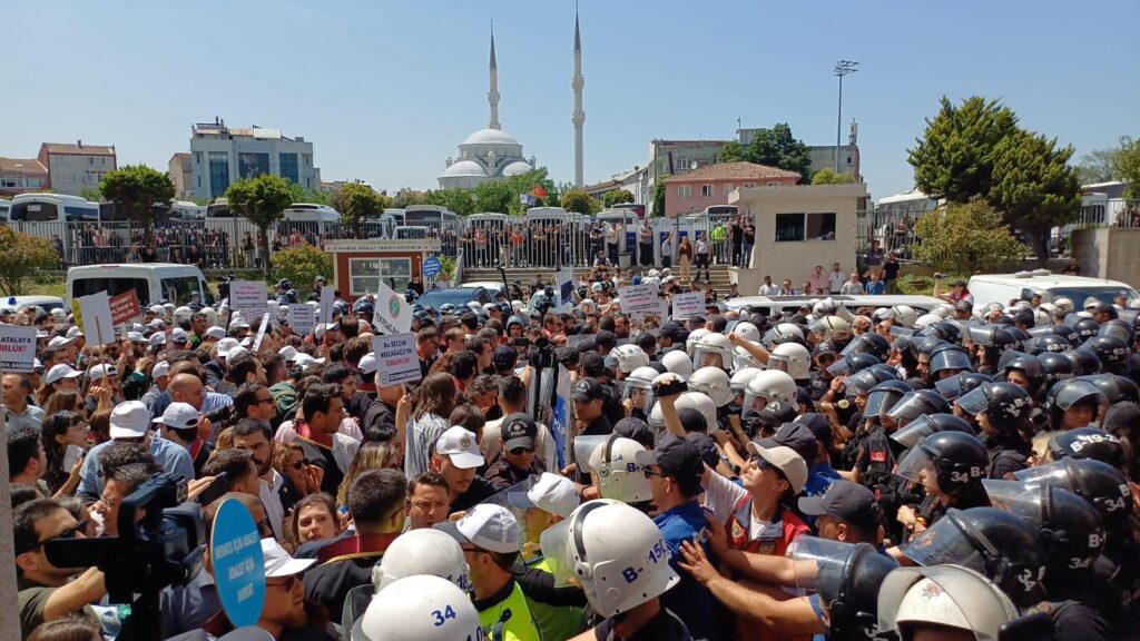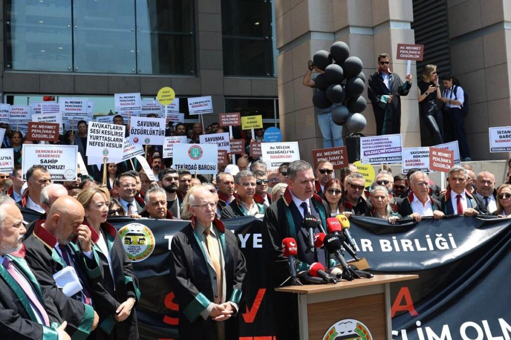 Tekirdağ Barosu Başkanı Egemen Gürcün, Başkan Yardımcısı Zümrüt Canku Arslan, Genel Sekreter Salih Mert Öge, önceki dönem Baro Başkanı ve Türkiye Barolar Birliği Delegesi Sedat Tekneci, Çorlu İlçe Temsilcisi Semih Erdevir, Onur Cengiz, Seray Şuraz ve Furkan Alim Göller ile Türkiye’nin dört bir yanından gelen baro başkanları ve avukatlar, savunma hakkının önemine dikkat çekmek için Çağlayan Adliyesi’nde toplandı. Ancak barışçıl bir yürüyüş, polis müdahalesiyle engellendi.