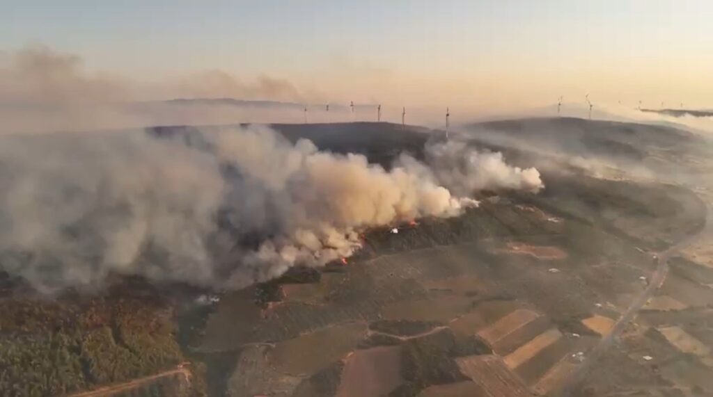 Dün öğleden sonra başlayan yangın, rüzgarın etkisiyle geniş bir alana yayılırken, alevlerin yerleşim alanlarına sıçramaması için yoğun çaba harcanıyor. Şarköy ilçesine bağlı 2 köy tedbir amaçlı tahliye edildi. Yangın bir yandan da drone ile havadan görüntülenirken, gökyüzüne yükselen dumanlar kilometrelerce uzaklıktan görülebiliyor.